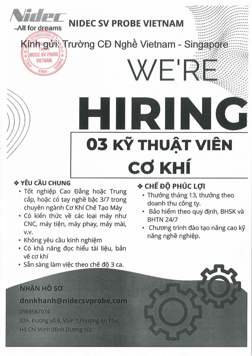 CÔNG TY NIDEC SV PROBE VIETNAM TUYỂN DỤNG