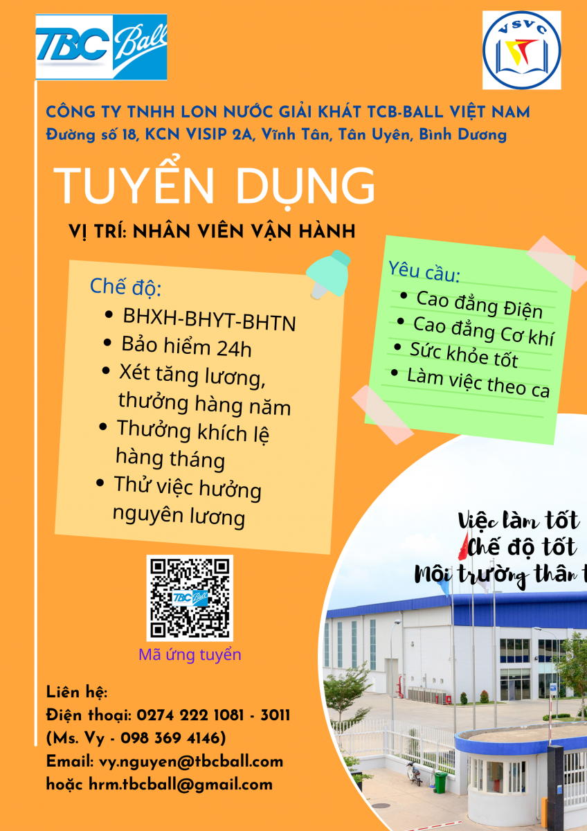 CÔNG TY TNHH LON NƯỚC GIẢI KHÁT TBC-BALL VIỆT NAM TUYỂN DỤNG