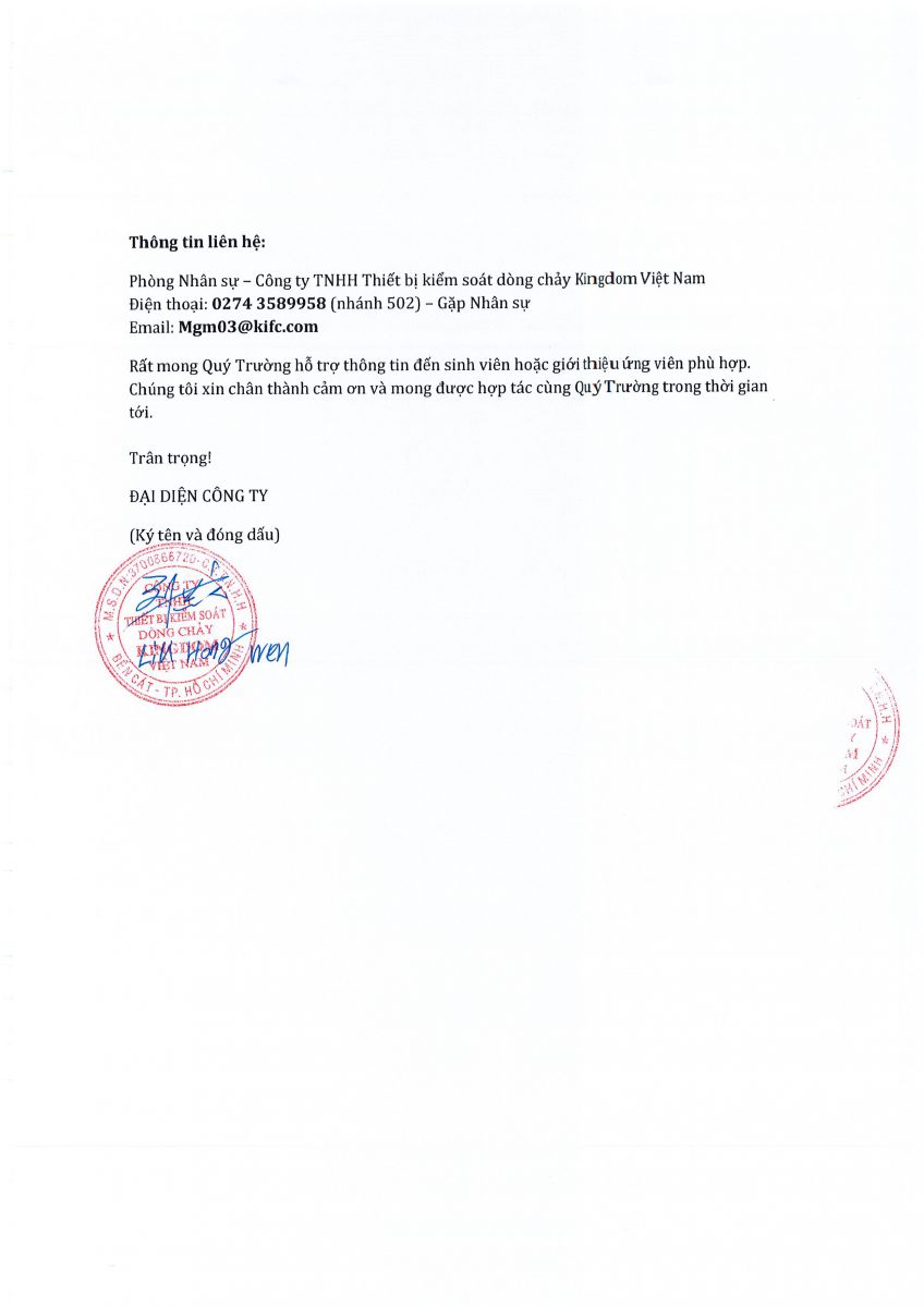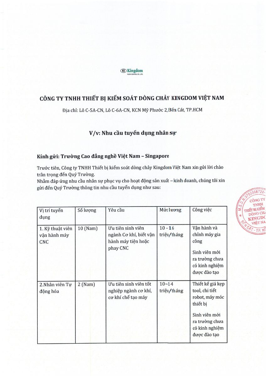CÔNG TY TNHH THIẾT BỊ KIÊM SOÁT DÒNG CHẢY KINGDOM TUYỂN DỤNG