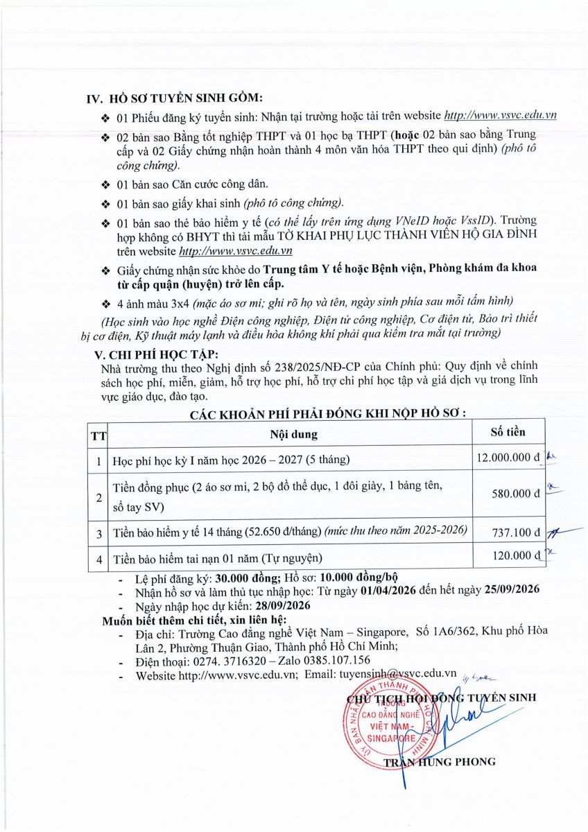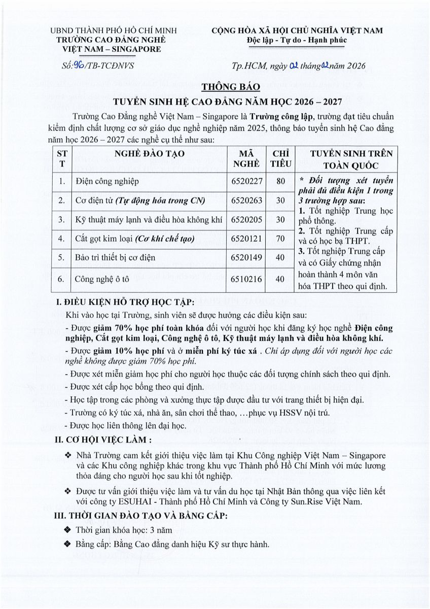 THÔNG BÁO TUYỂN SINH HỆ CAO ĐẲNG NĂM HỌC 2026-2027